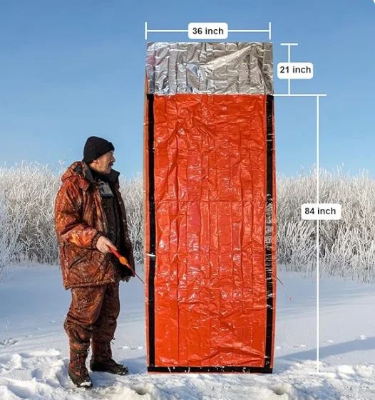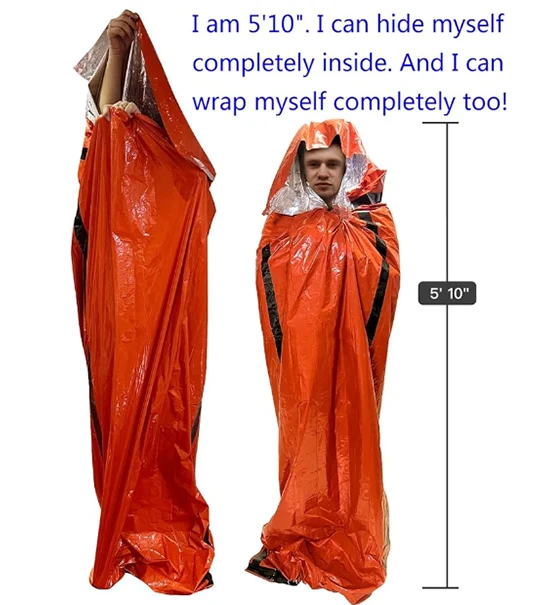 Ail apo ti o ni iwalaaye le mu awọn aye pọ si rẹ ti iwalaaye julọ ni oju ojo, gbogbo awọn akoko ati gbogbo awọn ayidayida. O ti wa ni ti o tọ ti ifarada ohun elo mi ti a ṣe apẹrẹ nipasẹ NASA fun iṣawari aaye. O dawọ duro / tan imọlẹ pada 90% ti ooru ara. O jẹ atunyẹwo, mabomire ati windproof.