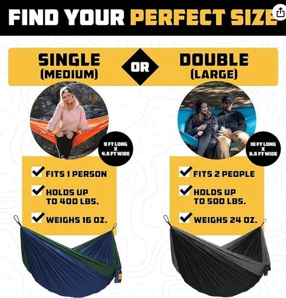 Hammock 3-in-1 ipago ti o jẹ ohun elo Hamupock wa ni ọpọlọpọ awọn akojọpọ awọ oriṣiriṣi lati ṣakojọpọ jia rẹ bi awọn titobi meji lati ba awọn aini meji si ibaamu awọn aini rẹ. Awọn ijoko oju-ọwọ kan ṣoṣo ni eniyan, ati pe o le mu 400 lbs. Owiwi meji le mu to 500 lbs., Ati pe o jẹ pipe fun meji.zhejoang jaayua ita awọn ọja co., ltd. Nigbati ko ba ni owiwisfitters to ju ti o wa ninu apo ipamọ ti a so sinu. Nigbati a ko ṣe gbega, apo ṣe ilọpo meji bi apo fun foonu rẹ, mu, tabi awọn ohun miiran. Ko si tobi ju Igba kan Nigbati idibajẹ, o jẹ pe o jẹ pipe fun opa ni ayika lori awọn stiri ita gbangba.