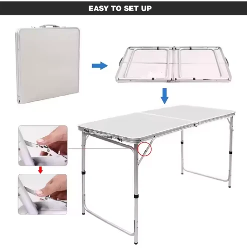 Tabili Aluminiomu Yipo, ni awọn lilo pupọ, mejeeji ile ati italegbe, pẹlu tabili idana, awọn iṣẹlẹ idaraya, RV ni ita ati ipeja.